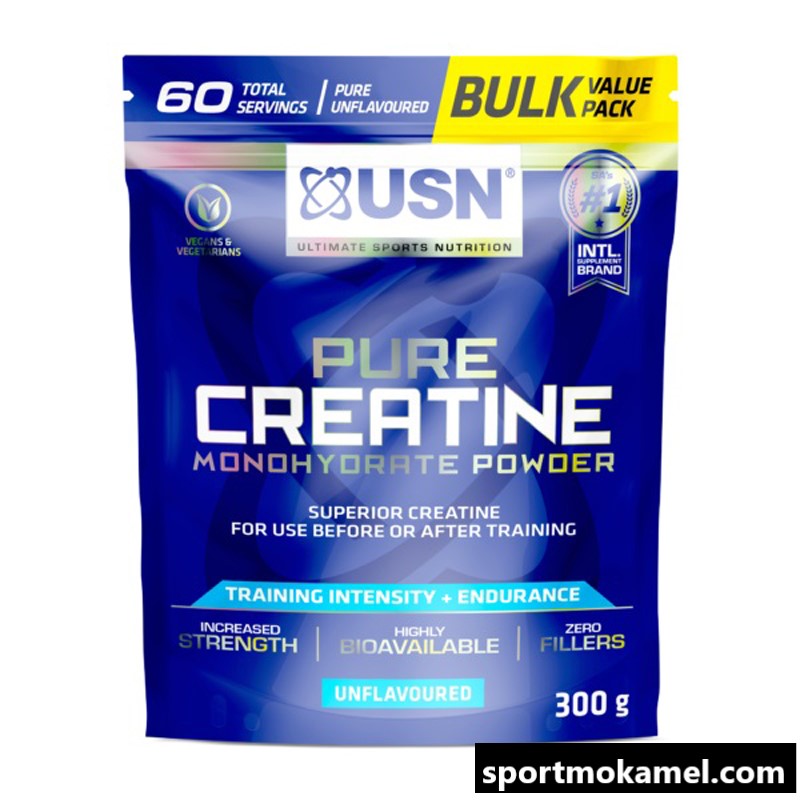 کراتین مونوهیدرات خالص ۳۰۰ گرمی یو اس ان بدون طعم (با ضمانت مرجوعی)